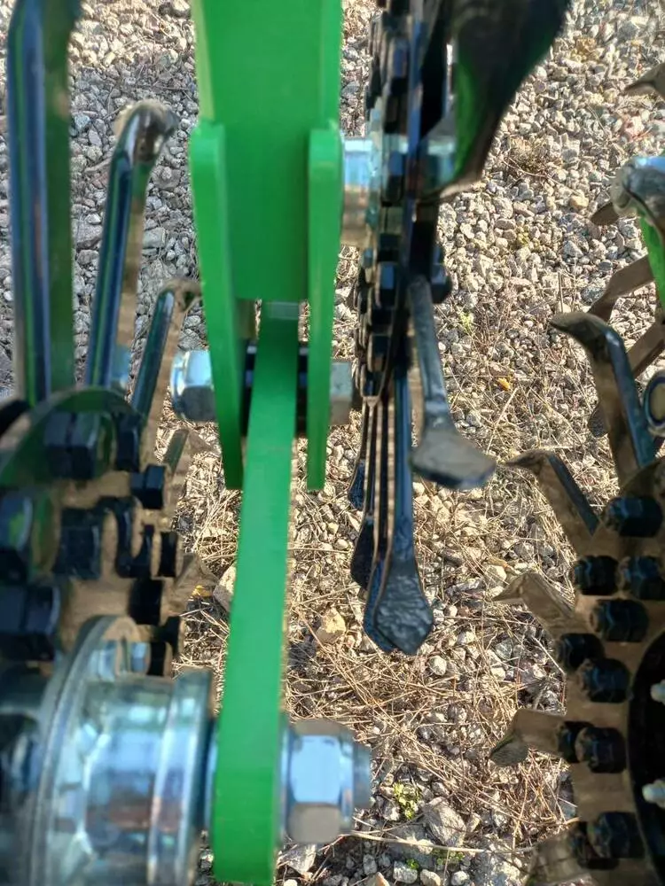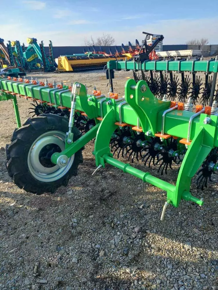 Диск з зубами розпушує ґрунт, таким чином запобігає запізніле проростання зерна. Так само розпушення сприяє рівномірному розподілу кисню і вологи в ґрунті, сприяючи зміцненню і росту рослини та далі її більш стійкої до посухи. 15-ть зубів на диску кріпляться двама болтами, які проходять через диск наскрізь, що дає можливість швидкої заміни зуба ані всього диска.У місці кріпленя зуба диск загнутий під 45º, що запобігає зміщеню зуба в різні боки та дає можливість використовувати агрегат в різних умовах та ґрунтах.