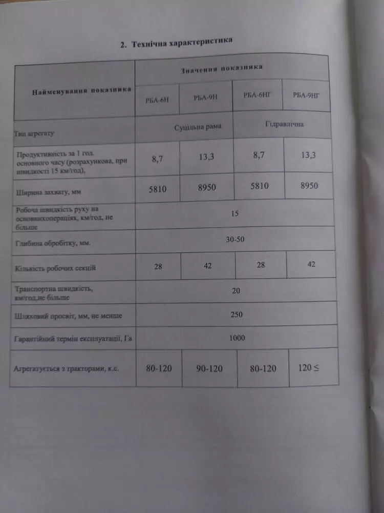 Агрегат випускається з шириною захвату від 3 до 9 метрів.