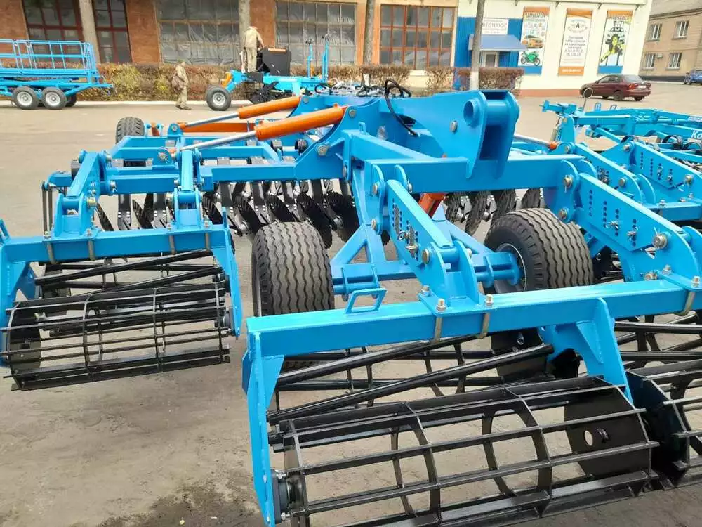 - Встановлений оптимальний у двох площинах кут атаки дисків забезпечує стабільність глибини обробітку, розпушування ґрунту, подрібненню та перемішуванню рослинних решток. Розташування дисків на відстані між ними 125 мм унеможливлює забивання рослинними рештками.