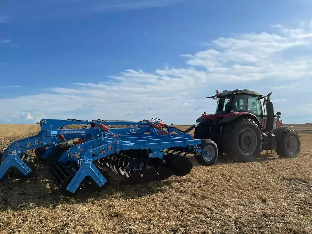 Дискатори DEFT – це універсальні V-подібні дискатори від компанії Агромаш-Калина, які поєднали в собі найкращі конструктивні рішення відомих світових брендів і як результат – багатофункціональні, швидкісні, з раціонально скомпонованими робочими органами агрегати, які за один прохід виконують усі операції, необхідні для обробітку ґрунту й передпосівної підготовки по стерні чи по неораному полю з шириною захвату від 5 до 8 метрів. На сьогодні вже важко уявити сучасні енергозберігаючі високотехнологічні процеси вирощування сільгоспкультур без агрегатів даного типу. Диски Bellota зі спеціальної насиченої бором загартованої сталі незалежно з’єднанні з рамою за допомогою квадратної стійки 32х32, яка виконує функції підвіски і демпфера захищає підшипники від можливих тимчасових динамічних навантажень. Пружинна 3 D стійка – завдяки переміщенню диска у трьох площинах, дає змогу краще копіювати мікрорельєф поля. На агрегатах DEFT установлені необслуговуючі дворядні радіально-упорні підшипникові вузли закритого типу FKL не потребують періодичного обслуговування і мають 2 роки гарантії від виробника. Колісні вузли від компанії STARCO забезпечують довговічну надійну експлуатацію в різних кліматичних та польових умовах.