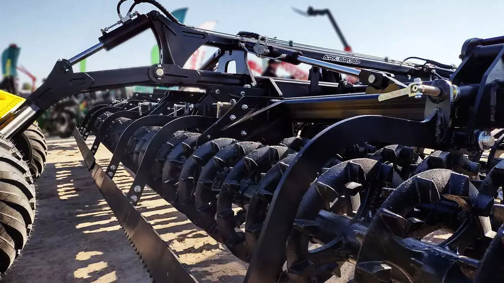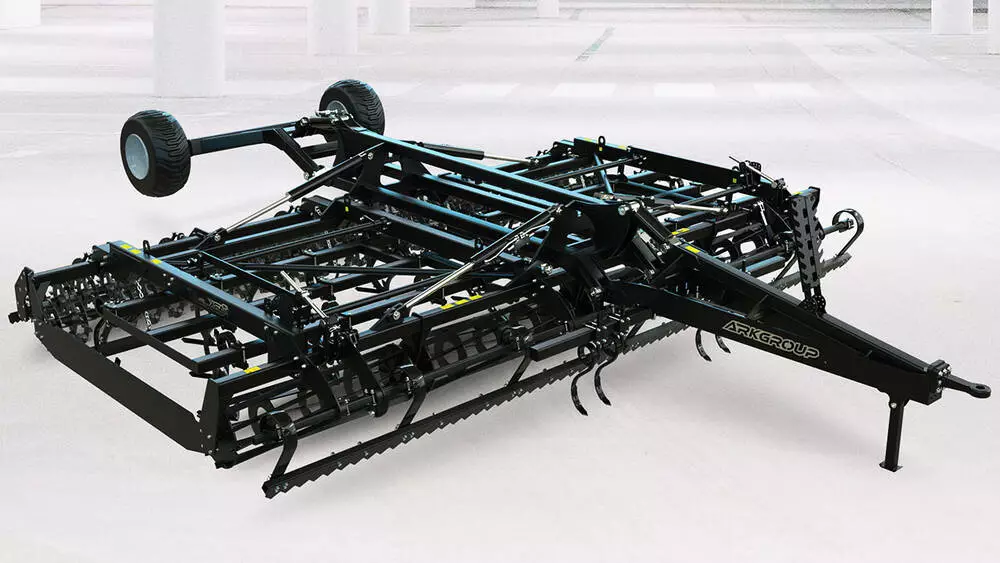 - Інтенсивне розпушування та підрізання ґрунту по всій ширині трьох-рядними секціями стрільчастих лап