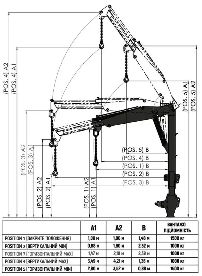 Маніпулятор МНФ-1500 навісній - навантажувач телескопічний, навісний використовується для навантаження і переміщення вантажів вагою до 1500 кг.