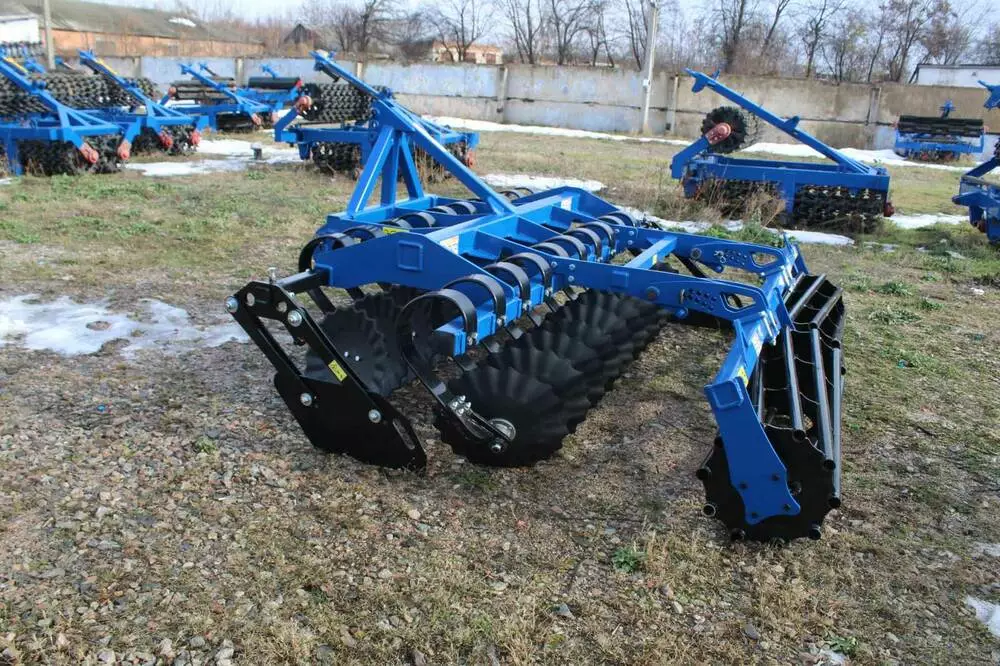 Використовуються диски типу Super Sharp Ф 510 мм європейських брендів зі спеціальної бористої загартованої сталі та пружинні S-подібні стійки 90х14, які виконують функції підвіски і демпфера та захищають підшипники від динамічних навантажень. На агрегатах встановлені не обслуговуємі дворядні радіально-упорні підшипникові вузли закритого типу світових виробників, які не потребують періодичного обслуговування і мають 2 роки гарантії від виробника.