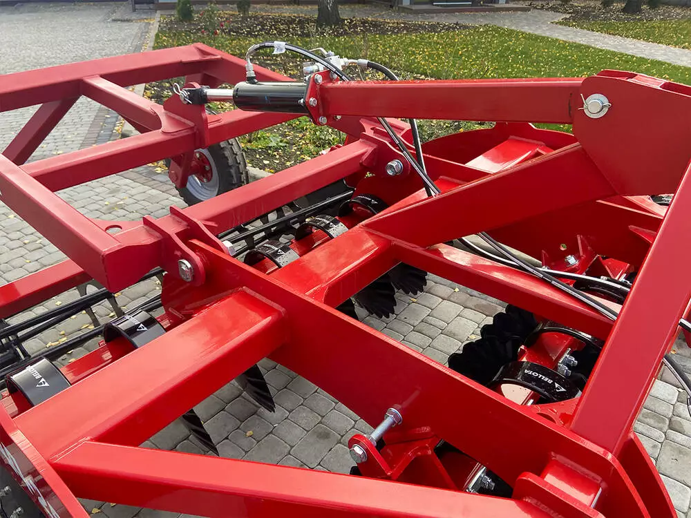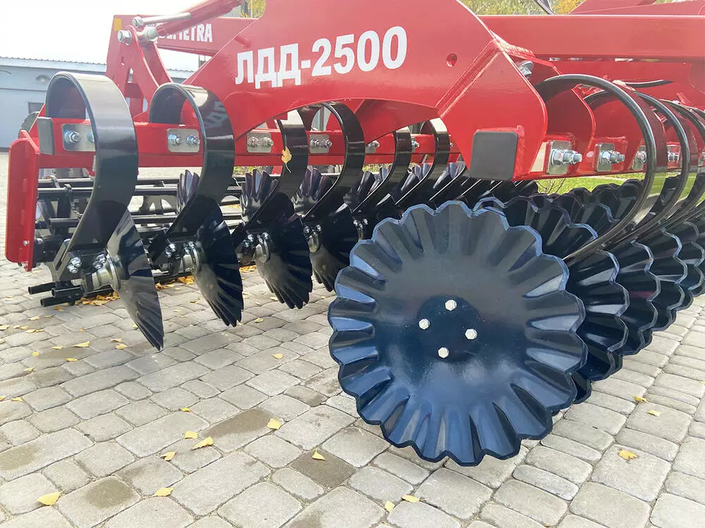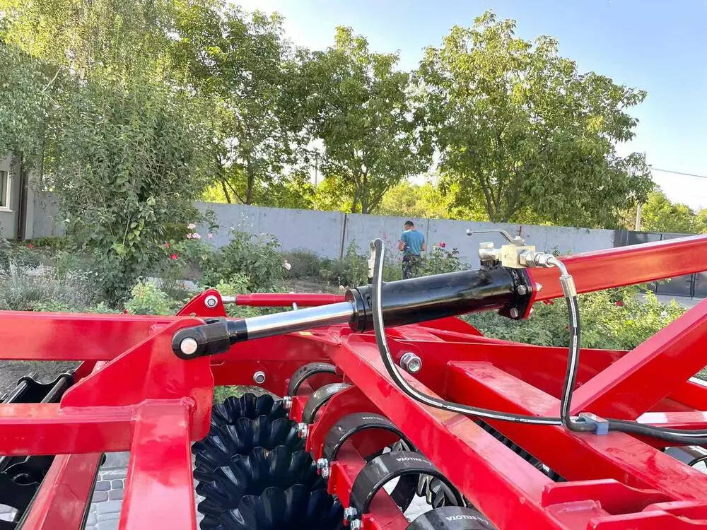 Встановлені Робочі органи діаметром 510 мм в кількості 20шт Кут атаки дисків сталий, 20 градусів, але $-стійка амортизує, яка нівелює вплив динамічного навантаження на робочі органи, тобто пом'якшують удар на ступицю та стійку при обробці грунту.