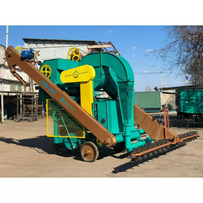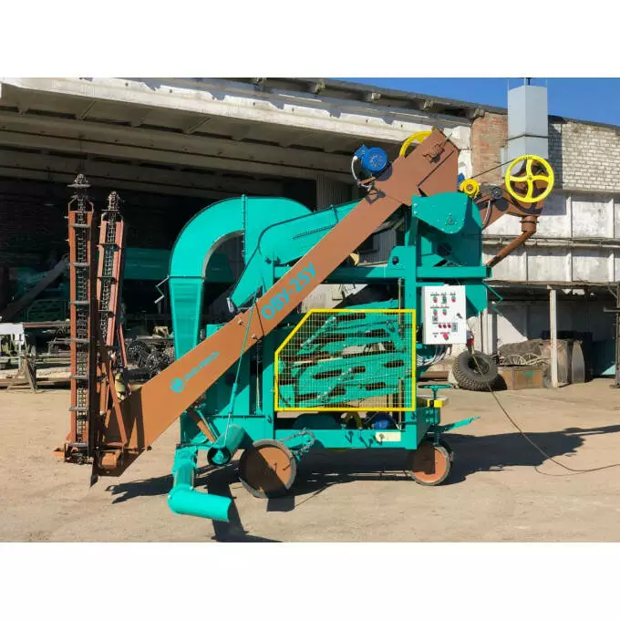 Очисник вороху посилений ОВУ–25 призначений для попередньої та первинної очистки зернового вороху колосових, круп’яних, зернобобових культур, кукурудзи, сорго, соняшнику від домішок на відкритих токах. Машина так само може використовуватися для перелопачування зерна в купі шириною не більше 4,5 м.