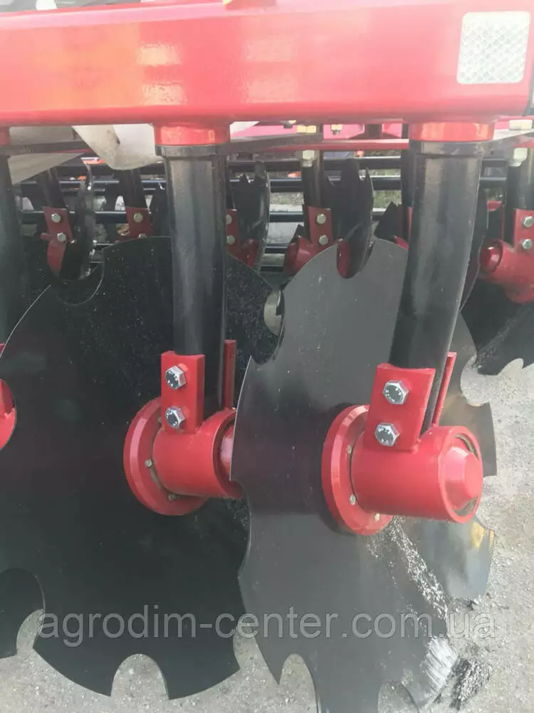 Кріплення дисків на індивідуальній стійці дозволяє дисковій бороні працювати на землях із великою кількістю рослинних залишків, а також на землях із будь-якою кількістю бур'бур'янів, при цьому виключаються намотування на вісь диска рослинних залишків і забивання міждискового простору.