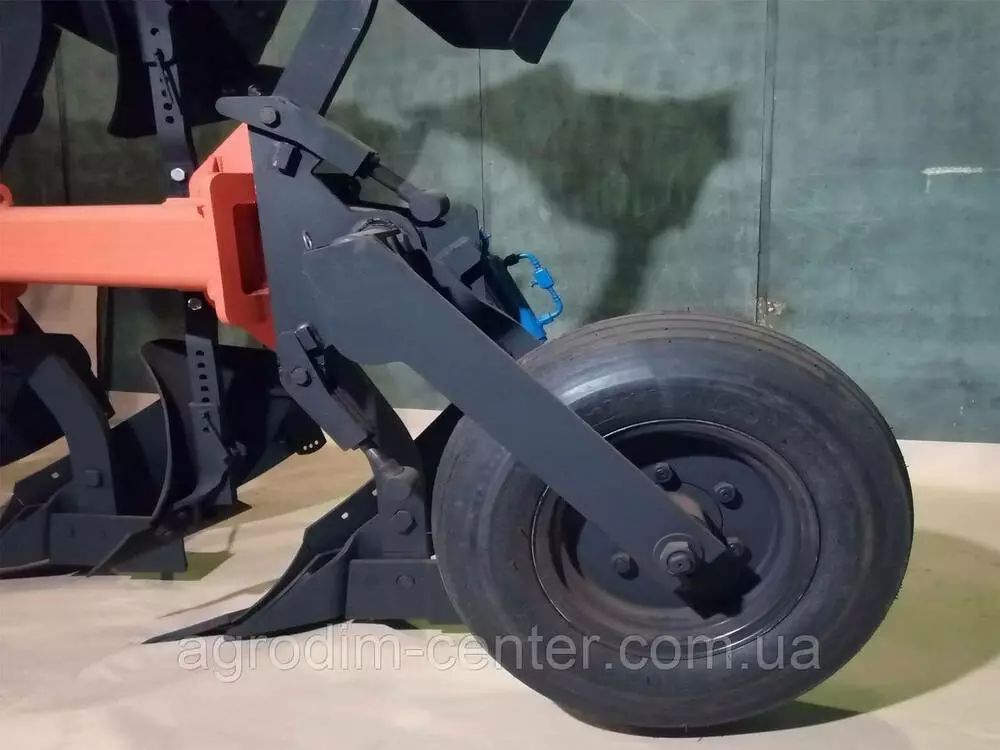- Плуг оснащений широким пневматичним колесом, що дозволяє утримувати стабільну глибину оранки.