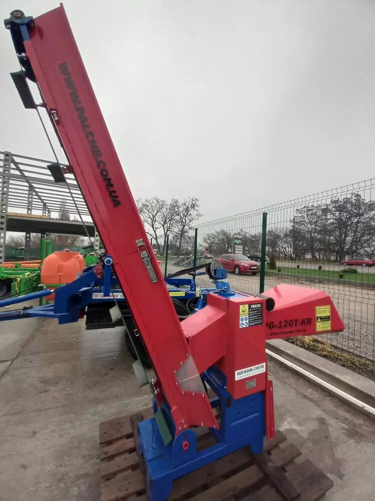 Подрібнювач гілок PG-120T-KR з посиленою рамою, призначений для подрібнення відходів деревообробки (обапіл, гілки з максимальним діаметром 12 см) на дрова довжиною 9 – 18 см.