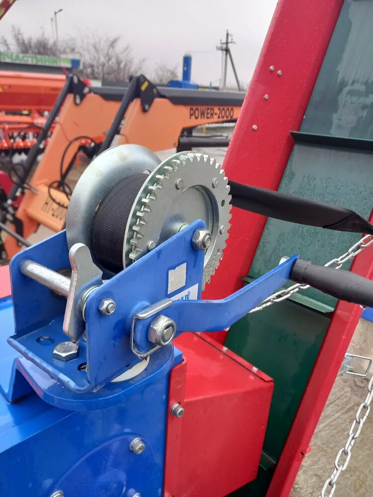 Встановлюється як триточкове навісне обладнання трактора з приводом через карданну передачу від валу відбору потужності. Має вивантажувальний конвеєр, який повертається на 90°. Привід конвеєра від гідравлічної системи трактора (кількість гідровиходів 1/1 злив). За допомогою форкопа до подрібнювача приєднується причіп, що значно спрощує його наповнення подрібненою деревиною.