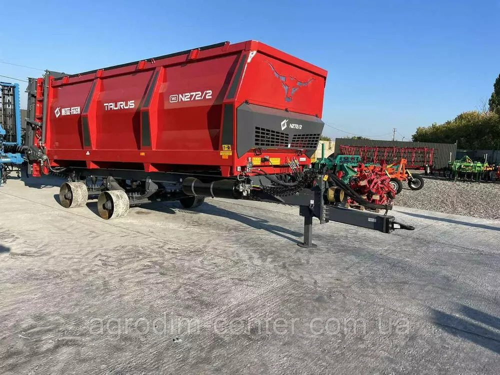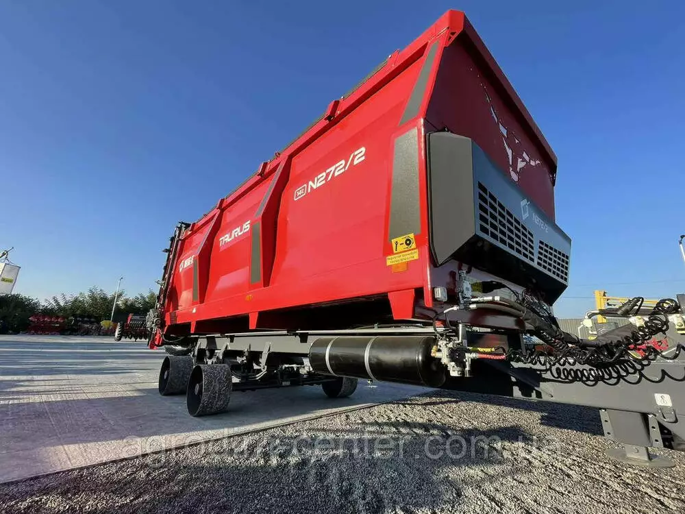 Навозоразбрасыватель N272/2 с номинальной грузоподъемностью 14 тонн. Машина оснащена шасси типа тандем на параболических рессорах и вертикальным 2-роторным адаптером, наклоненным вперед. Каждый барабан ротора сбалансирован для ограничения вибраций. Для повышения прочности используются сменные, привинчиваемые зубья ротора, изготовленные из высококачественной стали. Агрегатирование с трактором происходит с помощью нижней сцепки типа HITCH с возможностью регулировки и перестановки на верхнюю сцепку.