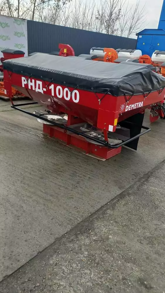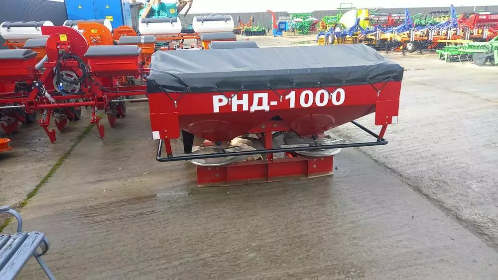 Розкидувач добрив РНД-1000 має конструктивну складову механічних вузлів, яка дозволяє максимально раціоналізувати витрата добрив, а завдяки форм-фактору сепаративного диска і лопатным частин механізму розкидача, ефективність удобрення грунту зростає в рази, заощаджуючи при цьому витратні матеріали.