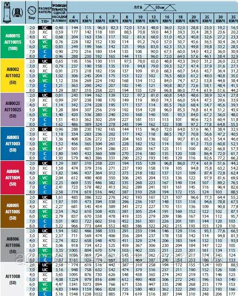 - Виготовляємо наконечники з вісьмома видами продуктивності й рекомендованим тиском 2-8 бар (30-115 PSI).