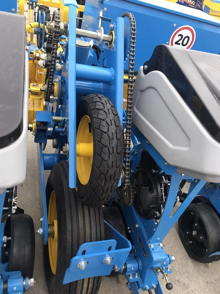 - Міжсекційне розташування опорно-привідних коліс (зарубіжний аналог) дозволяє унікати просівів і витримувати необхідну глибину загортання насіння і добрив