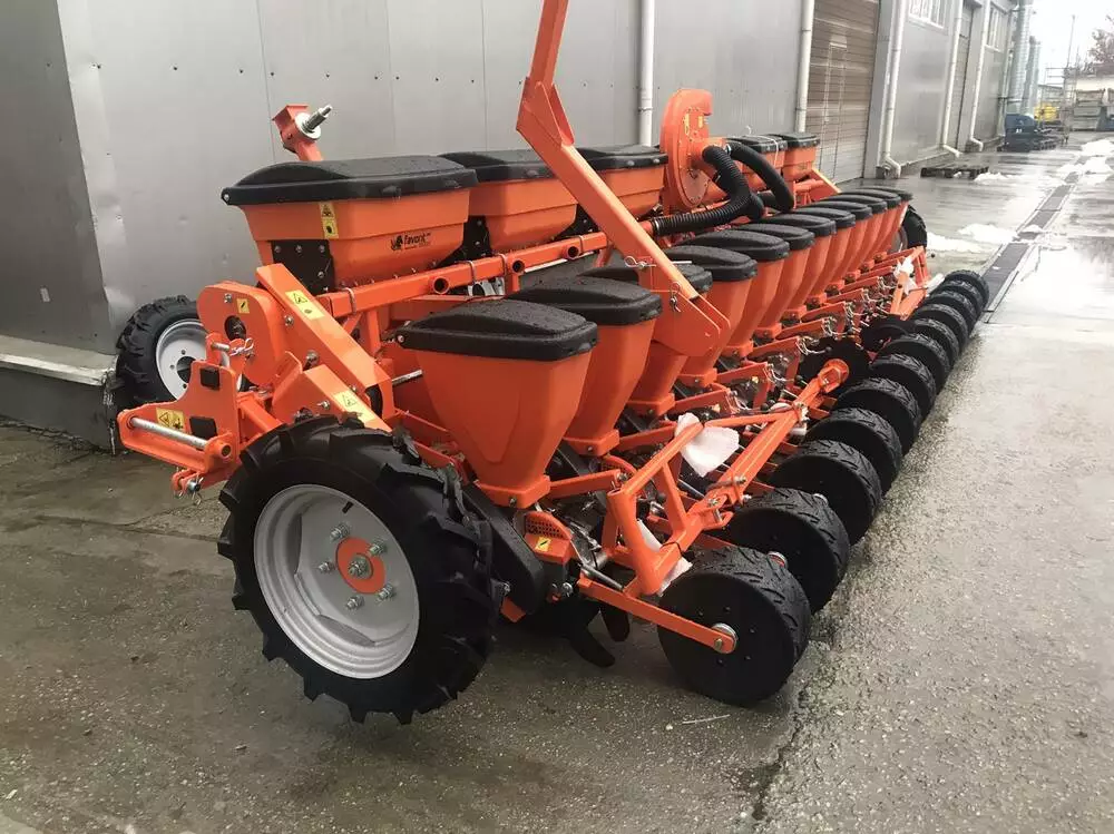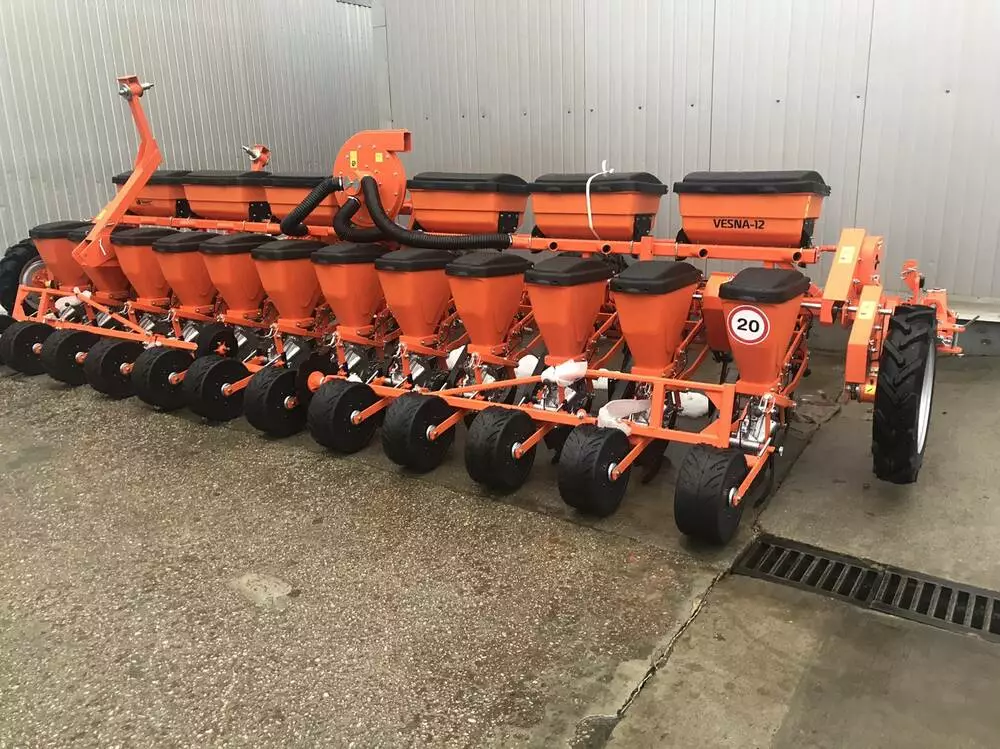Універсальна пневматична сівалка Весна-12 (VESNA-12) - призначена для точного посіву каліброваних насіння кукурудзи, соняшнику, сорго, сої, буряка, а також насіння кормових бобів, квасолі з одночасним, роздільним від насіння внесенням гранульованих мінеральних добрив і коткуванням грунту в рядках .