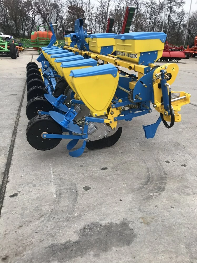 Сівалка точного висіву УПС 8 (СПУ-8) - універсальна пневматична сівалка призначена для точного посіву каліброваних насіння кукурудзи, соняшнику, сорго, сої а також насіння кормових бобів, квасолі, люпину з одночасним, роздільним внесенням гранульованих мінеральних добрив та прикочуванням ґрунту в рядках. Міжсекційне розташування опорно-приводних коліс сівалки точного висіву УПС-8 (СПУ-8) дозволяє більш точно дотримуватися необхідної глибини загортання насіння і уникати просівів.