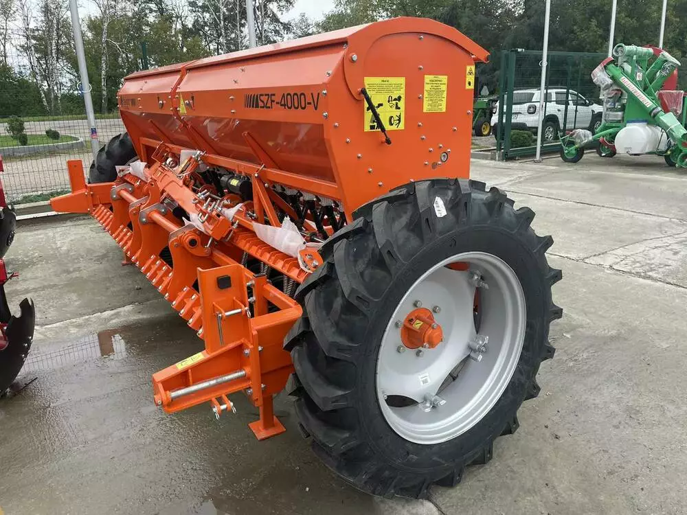 СЗФ-4.000-07V (варіатор, 26 сошників БОР зі зміщенням, 15см м/р, шини 12,4R28, збільшенний бункер, посилена рама, прикочуючі колеса, маркерна система з дільником потоку, транспортний пристрій)