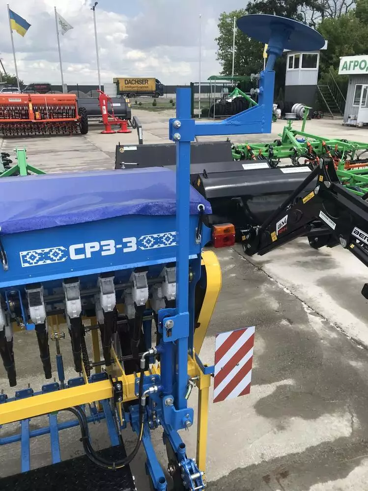 Сівалка зернова навісна СЗН-3,0 варіатори, прикотуючі колеса, пружинний загортач, бункер 880/900л, м/р 15см, сошник зі зміщенням, (без тукової системи/з туковою системою)