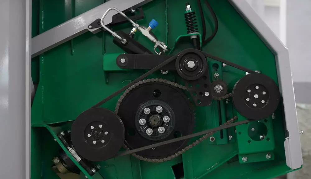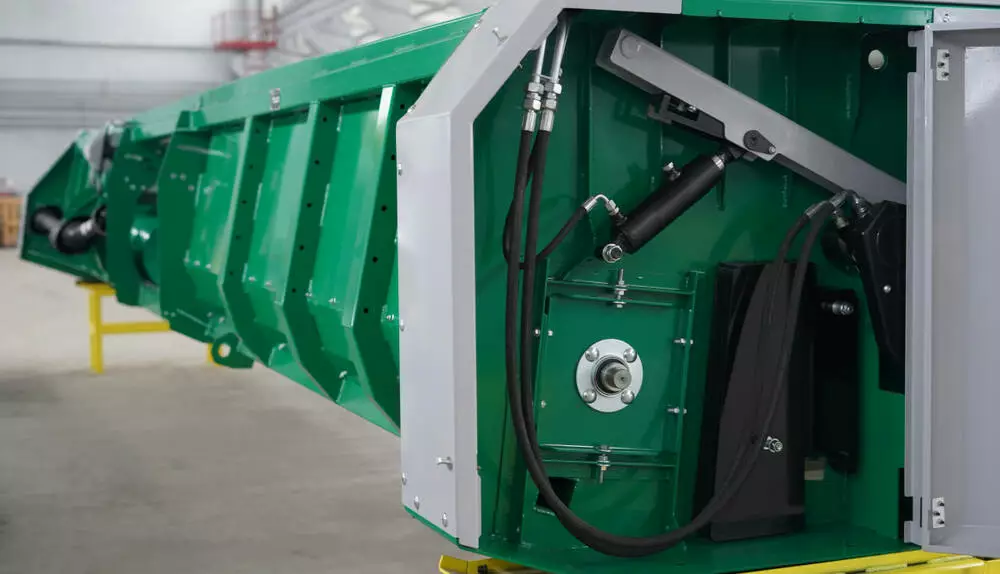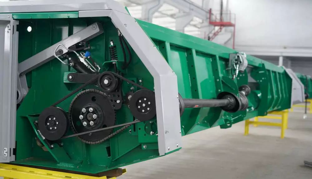 Вся система зрізу, включаючи привід, виготовлена з високоякісних компонентів, всі компоненти системи зрізу, що застосовуються, виконані зі спеціальної зносостійкої сталі, що гарантує мінімальні втрати при збиранні врожаю.