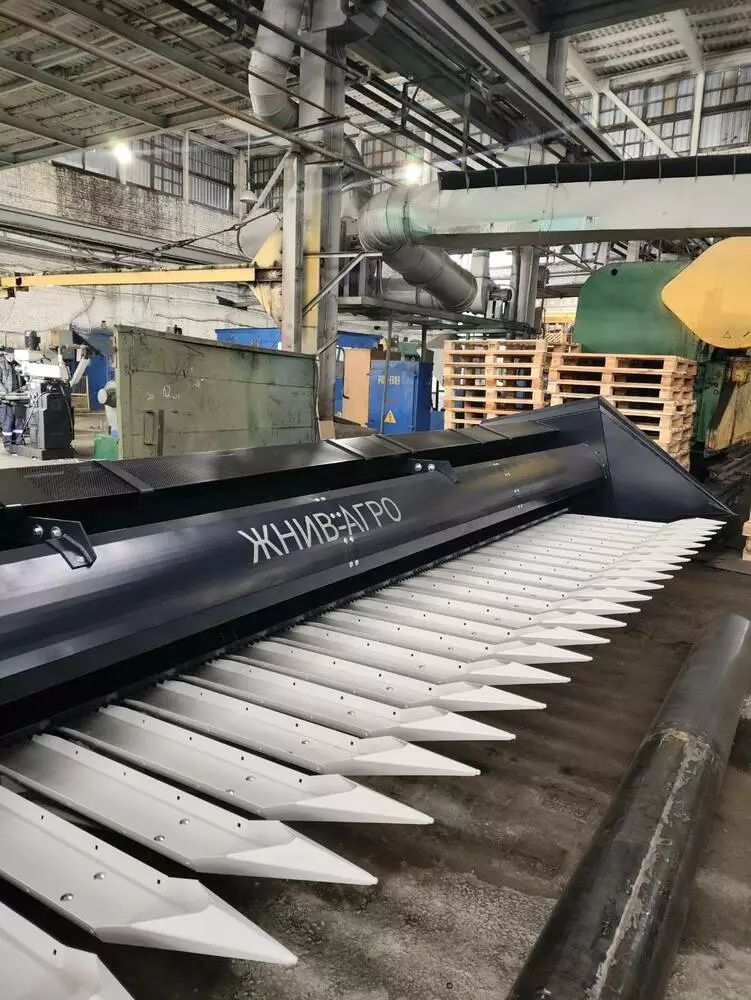 - Комплектується відбійним валом під ріжучим апаратом, який зменшує потрапляння стебла в похилу камеру комбайну, та повною адаптацією під ваш комбайн (карданний вал, перехідна рамка, оборотні зірочки)